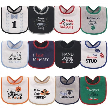 UPC: 0660168567069 | Hudson Baby Infant Boy Cotton Terry Drooler Bibs with Fiber Filling 12pk Holiday Boy Bow Tie One Size Prices